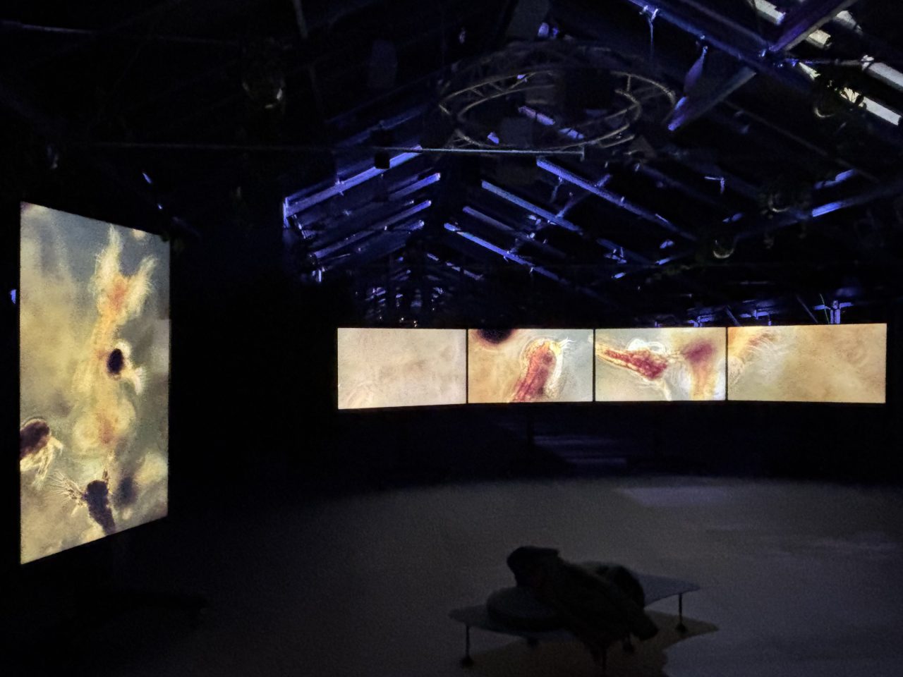 The installation was redesigned for the spaces of the main greenhouse and its immersive multi-channel audio system, working on the spatialization of sound and its ability to construct a continuous perceptual environment.